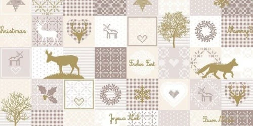 Das Design PEPE verbindet traditionelle weihnachtliche Motive mit einem modernen Patchwork Stil und verleiht so Ihren Tischen zur Weihnachtszeit eine gemütliche Atmosphäre. PEPE gibt es in den beiden festlichen Farbvarianten Rot-Grau oder Beige-Gold.