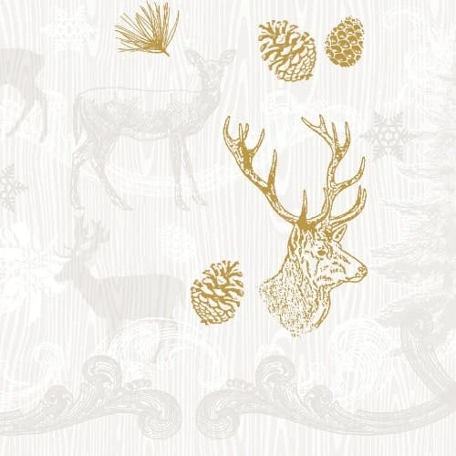 Ein imposanter Hirsch, ergänzt durch ein edles Rankenmotiv, ziert das Design BRUNO. Mit diesem Design können Sie elegante Tischdekorationen in den Farben Grau-Silber und Braun-Gold kreieren. BRUNO bringt Eleganz in Ihre winterliche Table Top Gestaltung!