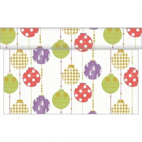 Kräftige Farbtöne und ein modernes Motiv mit Weihnachtskugel sind die Attribute unseres Designs ULLA. Das puristische Motiv besticht durch die Farbwahl mit Lila, frischem Grün und kräftigem Rot, akzentuiert mit Gold. Überraschen Sie Ihre Gäste zu Weihnachten mit dem modernen Tischdesign ULLA! Die stoffähnliche Linclass®-Airlaid Qualität, in Haptik und Optik kaum von textilen Produkten zu unterscheiden, wird Sie und Ihre Gäste begeistern. Mit den SOVIE® Tischläufern aus Linclass®-Airlaid stehen Ihnen alle Gestaltungsmöglichkeiten offen. Ihr Tisch wird durch unsere Airlaid Tischläufer des Designs ULLA effektiv geschützt und mit wenigen Handgriffen entsteht ein völlig neues Ambiente.